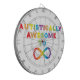 Design made with love for Autism Awareness. Rainbow letters form the phrase 'Autistically Awesome To Infinity' with an infinity symbol.