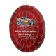 A stunning dartboard for an auto body shop and painting business reception area. The logo is a sports car with an incredible paint job on a rich, crimson, metallic-look background. Customise with your details and give a strap line, quote or personal message to give a professional feel and really sell your service. These also make great promotional giveaways to help market your business
