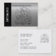 Auto detailing business cards with modern design that includes a retro graphic image of an auto detailer in the background, simulated silver shiny metal background digitally printed on the front to look like real metal, and text layout you can customize to suit your needs on both sides in this two side design. Designed as a business card template for an auto detailing service, hand car wash, or professional detailer.