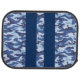 Auto mat set of four is shown in a blue military camo print with blue color racing stripes.