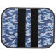 Auto mat set of four is shown in a blue military camo print with black color racing stripes.