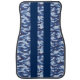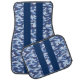 Auto mat set of four is shown in a blue military camo print with blue color racing stripes.