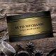 This stylish and manly auto mechanic repair service business card features a sleek black and gold steel metal design. It will give customers a professional and reliable impression of your auto repair services. With its bold and modern look, this business card will surely stand out from the crowd and help you promote your business. It includes all the necessary information, such as your business or personal name, contact information and a website or email address, so that customers can easily reach you and get the repairs they need. With its high-quality materials and eye-catching faux brushed metal design, this business card will be a great way to advertise your business and give customers confidence in your services. This card can also be used for any other company or business service.