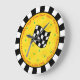 Auto Race Fan Checkered Flag Black Yellow Custom Large Clock