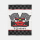 Auto Racing Design Fleece Blanket with customizable personalization.