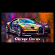An image of a exotic sports car surrounded by vibrant colors on a black background.