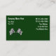 Automotive business cards with cool racing flag and emblem on dark green background, along with a great text layout you can customize now! Best business cards for themes related to auto repair, racing, mechanic, auto body, or auto sales.
