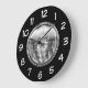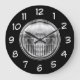 Cool clock for guys with a car headlight in the background and bold clock face numbers making this easy to read as a wall clock for a mancave, work space clock, or clock for a car mechanic with realistic automotive headlight
