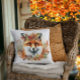 Autumn Fall Themed Woodland Cute fox with Flower wreath.Capture the cozy charm of the autumn season with our exquisite hand-painted Autumn Woodland Watercolor Wreath Pillow. This unique decorative pillow is a delightful addition to your home decor, designed to infuse your living space with the warm and inviting vibes of fall. There three themes - Autumn/Fall, Summer, Winter with personalised monogramm on the back.