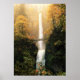 A misty beautiful morning in October at the majestic Multnomah Falls. Colorful fall leaves & lush green moss. Columbia River Gorge, Oregon.