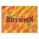 This banner spells Autumn with colors of gold and brown. Several leaves surround the banner. A backround of Autumn colors in gold, rust and yellow has been added to this design. Also available in a tiled design. Available in assorted styles. This tablecloth is available in 3 different sizes. Great addition to your Autumn decor.