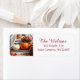 Lovely Thanksgiving return address labels full of colorful vibrant Fall leaves, basket of Mums and pumpkins sitting on a farm house front steps.