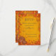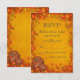 Festive yellow, red, brown and orange toned fall theme wedding RSVP design featuring decorative autumn colored leaf and vine border with a a group of pumpkins in the bottom corner. The background has a beautiful faux texture for an old paper look. This design also comes on many other paper products to suit all your wedding set needs. Follow the link below.