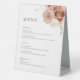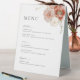 This Autumn Bohemian Wedding Tent Menu Sign from the Emilia Collection features hand-drawn florals in fall shades of burgundy, pink, and gold. Personalize it with your details easily and quickly. Simply press the 'customize it' button to further re-arrange and format the style and placement of the text.