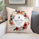 A beautiful keepsake baby birth stats throw pillow with watercolor botanical floral wreath in pretty fall colors on blush pink background. Personalize the design with baby's name monogram, birthday and birth stats or other text. Use the design tools to choose any background color, add photos, change text fonts and colors to create your own one of a kind nursery decor. Custom baby name pillows make a great gift for new parents!