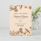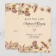 Autumn Boho Wildflower Wedding Save the Date in colorful fall hues of burgundy, peach, green and orange. Wedding website on the back.