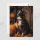 A beautiful black and white Border Collie and pumpkins autumn Halloween/Thanksgiving art
