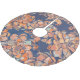 This custom holiday Christmas tree skirt features a beautiful vintage style botanical pattern of florals in autumn navy blue and desert orange. Personalize it with your name. Great gift idea.