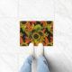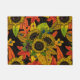 Hand drawn bouquet of sunflowers, autumn leaves blueberries and blackberries and beetles