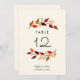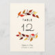 This 5x7 wedding table number features the table number circled by two autumn branches. It has space for the couple's names and the date at the bottom. The design repeats on the back.