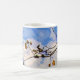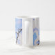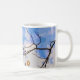 Stark black branches stand out against yellow autumn foliage and a blue sky with interesting cloud formations in an abstract pattern on this fine art mug.