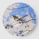 Stark black branches stand out against yellow autumn foliage and a blue sky with interesting cloud formations in an abstract pattern on this fine art wall clock.