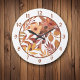 The pretty autumn browns and golds at the center of this clock are attractive and appropriate all year long. The warm tones are included in flowers, leaves, and stems. A circular matching brown frame separates the numbers from the floral images, and everything is placed on a white background.
