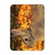 Gorgeous nature photo of an adorable wild rabbit in vibrant orange fall leaves on a sunny autumn day.