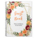 This beautiful and elegant wedding guest book features watercolor burgundy red and orange flowers with foliage on a gold geometric frame. The text combines handwritten script and serif fonts for a stylish and modern look. This is perfect for an autumn fall rustic wedding.