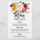 Watercolor autumn / fall floral wedding menu features a stunning bouquet of blush, orange peach, and marsala burgundy rose flowers