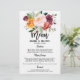 with lush green botanical leaves and eucalyptus leaves and faux gold glitter. This colorful invitation will be perfect for fall or autumn