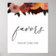 Favors sign featuring an illustration of burgundy, blush and orange flowers and greenery with the word "favors" in a fun calligraphy script.