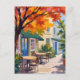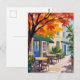 Autumn Cafe Watercolor Fall Foliage Postcard