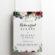 This autumn calligraphy rehearsal dinner welcome sign is perfect for a rustic wedding rehearsal. The design features burgundy, red, navy, blue and blush radiant and graceful hand-painted flowers, inspiring natural beauty.