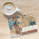 These 4" x 5.6" thank you cards feature an abstract leaf design in shades of blue spruce, cinnamon, caramel and pine with placeholders for the names of the bride and groom. The inside is intentionally left blank for a personalized note.