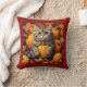 Autumn Cat with Pumpkins & Leaves Throw Pillow
