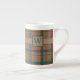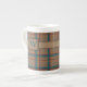 A soft raw umber base is crisscrossed by bands of port wine red, bright autumn orange, and rich jungle green in this pleasant plaid that combines trendy colors in a classic and cozy pattern perfect for fall. This mug is available in jumbo, espresso, and bone china sizes and styles. Customize the monogram with your initial to make this mug your own.