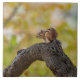 A cute chipmunk poses for the camera on a tree limb against a background of autumn color.