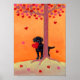 Whimsical and cute Labrador Retriever painting painted by Naomi Ochiai from Japan. Great fun gifts for dog lovers who love Black Labradors! An adorable Black Lab Puppy is standing behind the autumn tree with a red heart in his/her mouth. What a cute expression!! Lots of hearts in the picture. Nice for Valentine's Day gifts. You can customize text and more!