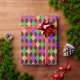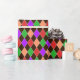 Harlequin pattern in multiple colors: orchid, orange, green, and brown. Fun for the fall holidays like Halloween and Thanksgiving.