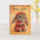 This warm and comforting “Thinking of You” card features a baby bunny in a cozy orange romper and embroidered bonnet, gently holding a small bouquet of flowers. With soft golden tones and a tender expression, this design brings heartfelt reassurance and gentle sweetness to anyone who needs a little extra care. Perfect for sending love, support, or a thoughtful reminder that someone is holding them close in their thoughts.