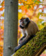 Captured during the vibrant fall season, this image showcases a group of playful monkeys in their zoo habitat, surrounded by golden leaves and the warm tones of autumn. Their natural curiosity and lively behavior contrast beautifully with the calm, earthy backdrop of the season. This scene highlights the harmony between wildlife and the changing environment, making it perfect for themes related to animals, seasonal transitions, and zoo life.