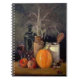 Autumn Decorations on Table, Pumpkin, Fruit, Drink Notebook