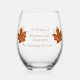 Wedding wine glass autumn design. You can customise this autumn wedding wine glass with your wedding details. Should you require any help with customising then please contact us through the link on this page. Autumn design personalised wedding wine glass