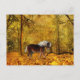 Draft horse in autumn woods with multiple golden shades horse lovers postcard