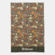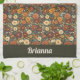 Beautiful autumn flowers and leaves in fall colors of burgundy, cream, orange, and russet combine to make a beautiful kitchen towel. Personalize with your name in a dark green band at the bottom.