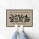 Autumn Elegance Welcome Doormat: Welcome guests with a touch of rustic charm with this personalized fall-themed doormat. The design features the phrase "Welcome to Our Home" at the top, while the centerpiece showcases two beautifully detailed pumpkins accented by elegant scrollwork and a vibrant array of autumn leaves. A customizable space below allows you to add your family name or personal message, making this doormat a warm and inviting addition to your entryway. The rustic faux burlap texture adds an earthy, vintage feel, perfect for embracing the fall season. Ideal for outdoor use, this doormat is not only decorative but also durable for daily wear.