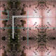 A pretty pink, white, yellow, green and black art design of sunlight reflected on water and falling autumn leaves.