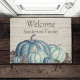 Happy Fall Personalized Custom Autumn Fall Blue Pumpkin Rustic Cute Gray Wood Doormats & Rug