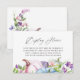 Sweet peas and pumpkins bridal shower display shower cards with hues of pink, purple, violet and blue and elegant handwriting typography customizable to your event specifics.